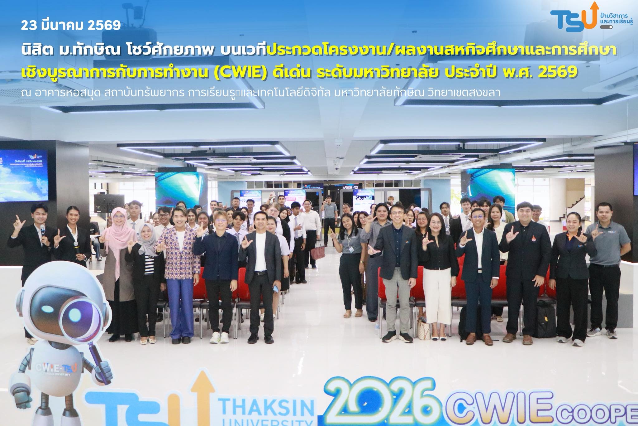 ประกาศรายชื่อผู้ส่งผลงานเข้าร่วมประกวดโครงงาน/ผลงาน CWIE ดีเด่น ระดับมหาวิทยาลัยทักษิณ ประจำปี พ.ศ. 2569
