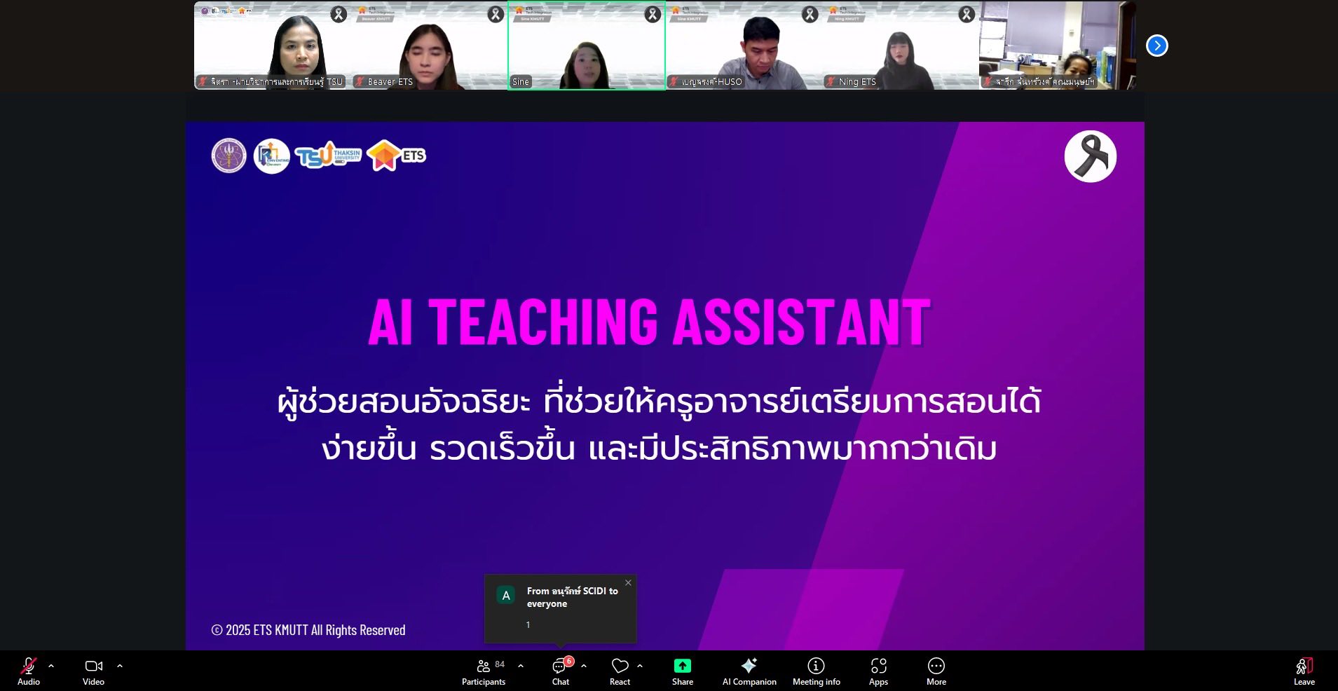 พร้อมทีมจาก Education Technology Development and Integration Support (ETS)มหาวิทยาลัยเทคโนโลยีพระจอมเกล้าธนบุรีมาเป็นวิทยากรให้ความรู้และแลกเปลี่ยนประสบการณ์เกี่ยวกับการใช้เครื่องมือ AI เพื่อการสอนด้านการประกอบการอย่างมีประสิทธิภาพ