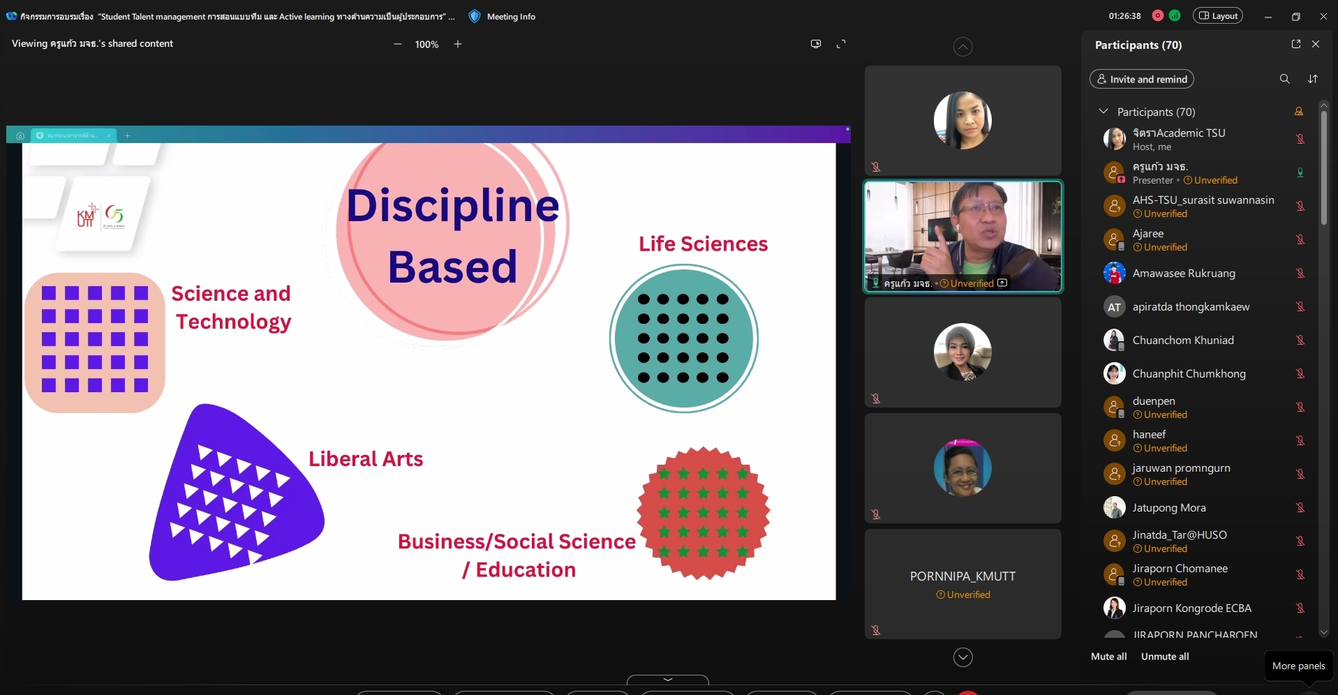 “Student Talent Management การสอนแบบทีม และ Active Learning ทางด้านความเป็นผู้ประกอบการ” ผ่านระบบออนไลน์ Cisco WebEx Meeting