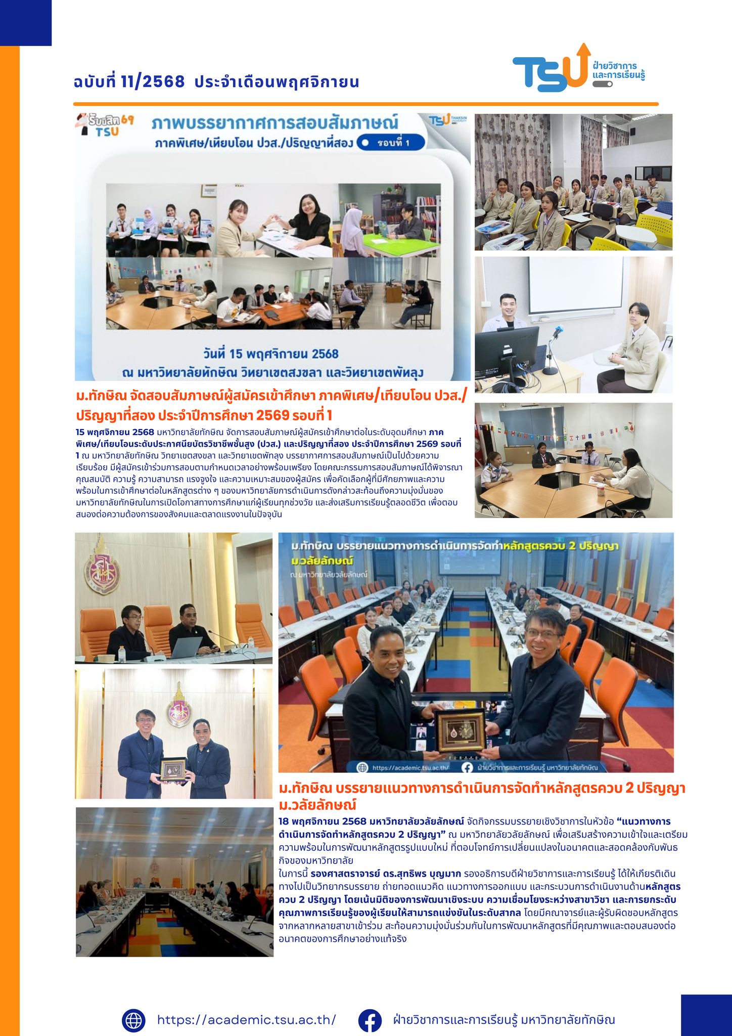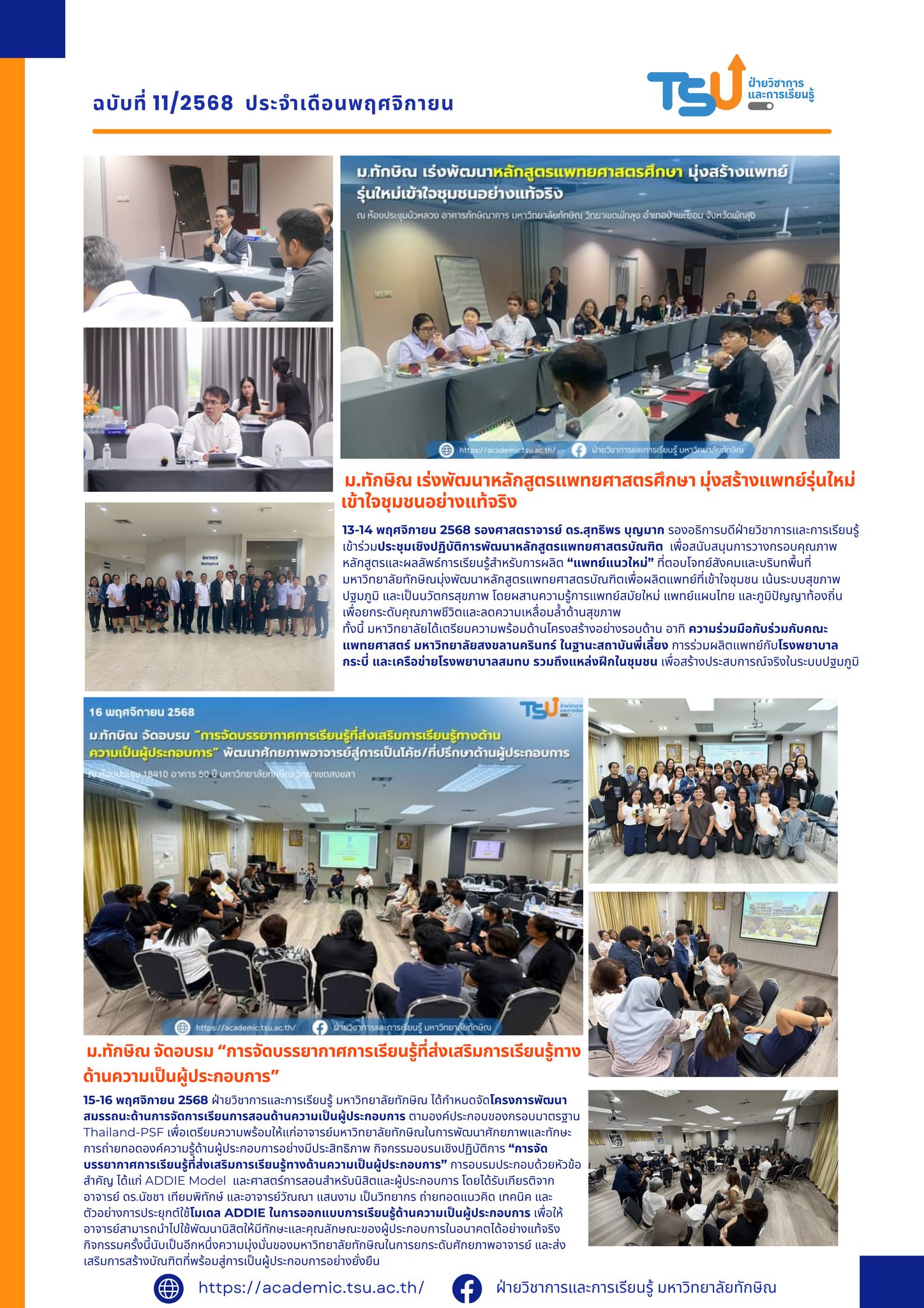 จุลสารประชาสัมพันธ์ ฝ่ายวิชาการและการเรียนรู้ ฉบับที่ 11/2568 ประจำเดือนพฤศจิกายน 2568