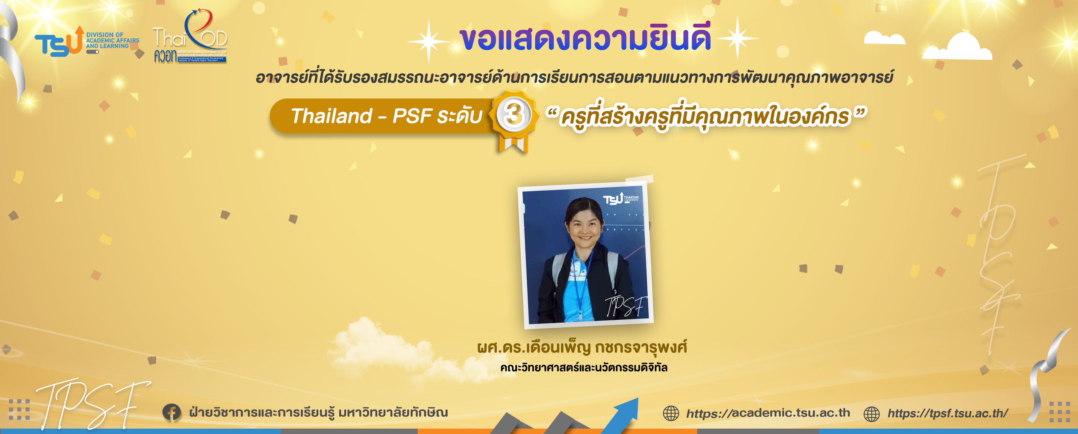 ฝ่ายวิชาการและการเรียนรู้ มหาวิทยาลัยทักษิณ ขอแสดงความยินดีและขอยินดีต้อนรับ นายณัฐพงศ์ ย่องบุตร ในโอกาสได้รับการแต่งตั้งให้ดำรงตำแหน่ง หัวหน้าฝ่ายวิชาการและการเรียนรู้